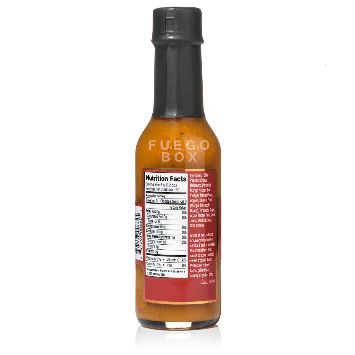 Chilies, Mango Juice, Rice Vinegar, Rum, Mango, Lime Juice, Vanilla Extract, Cilantro, Salt.