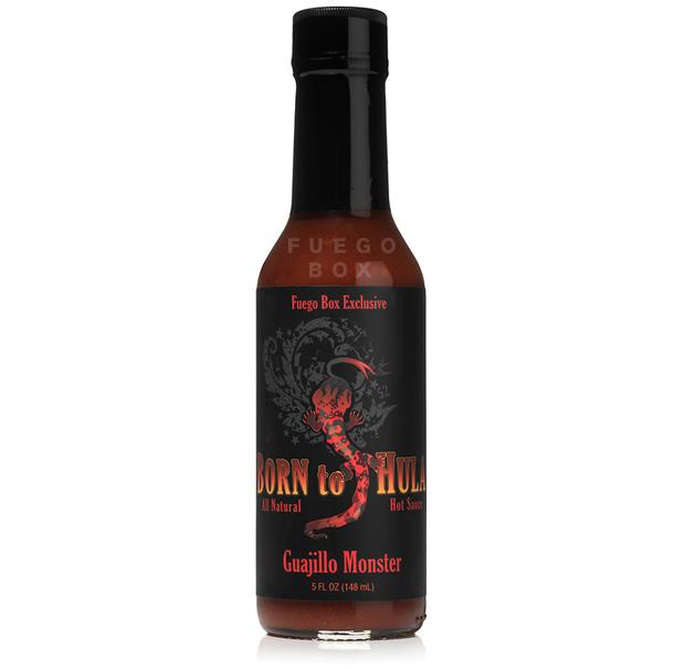After working together for 3+ years, Ed at Born to Hula and Mike at Fuego Box thought it was due time for a collaboration. Over a year in the making, we present you with Guajillo Monster, a Fuego Box Exclusive that pays homage to the Gila Monster; a slow moving, venomous, reptilian humanoid that roams the Southwest and Mexico. This addictive sauce starts with a venomous bite from habaneros & guajillo chiles and is followed by a latent endorphin rush from smoked ghost peppers. Legend has it that you'll turn into a Guajillo Monster if you eat a whole spoonful...