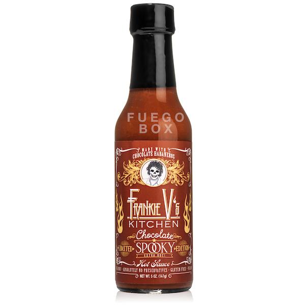 When Frankie V got ahold of a special batch of chocolate habaneros, he called us up to see if we'd be interested in a hot sauce exclusively made for Fuego Box. Considering our Spooky White obsession, we couldn't turn them down. Made using the freshest and highest quality organic and locally-sourced ingredients, Spooky Chocolate is loaded with the flavor of organic chocolate habaneros, enhanced with a touch of organic cacao powder, for that perfect sweet and spicy flavor!