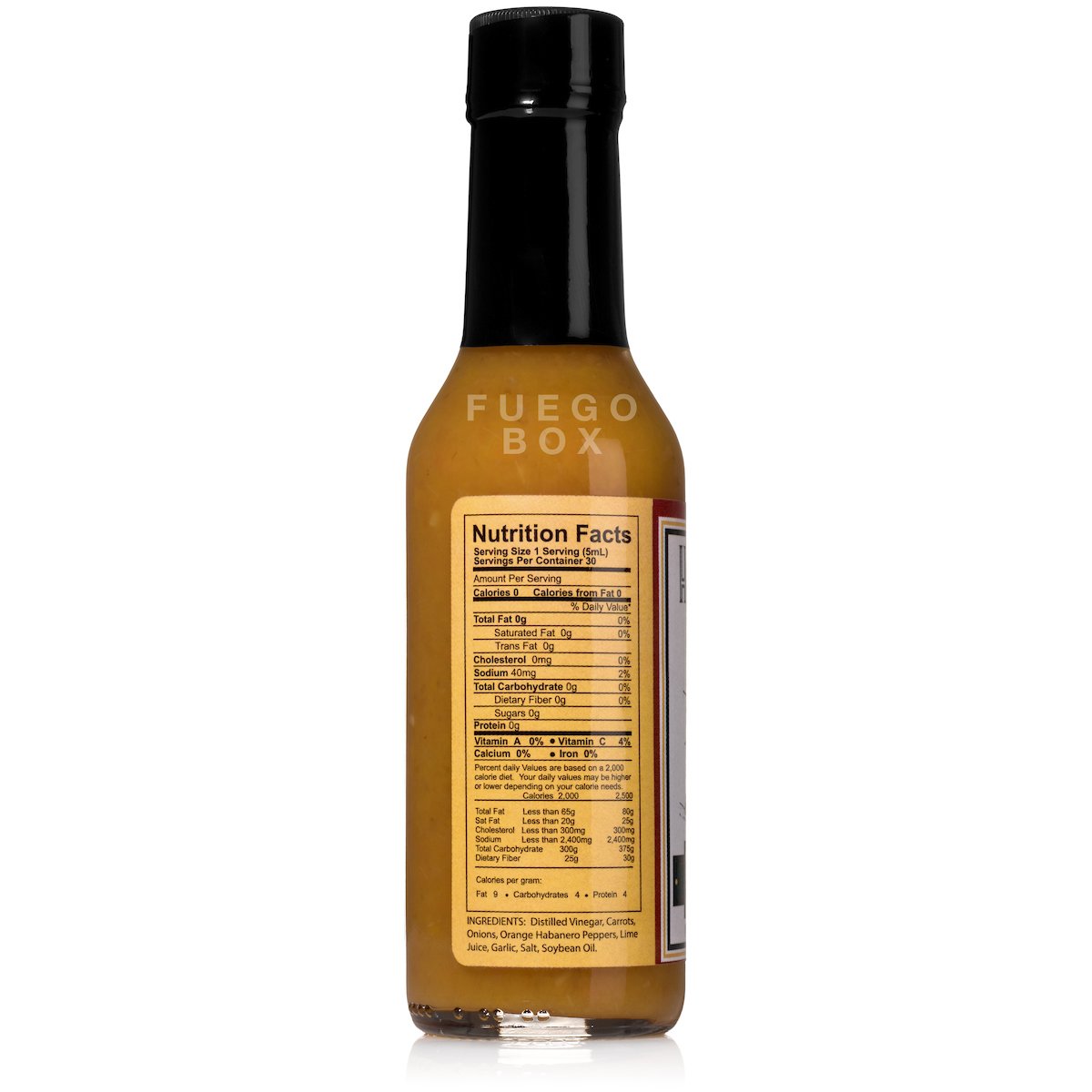 Distilled Vinegar, Carrots, Onions, Orange Habanero Peppers, Lime Juice, Garlic, Salt, Soybean Oil.