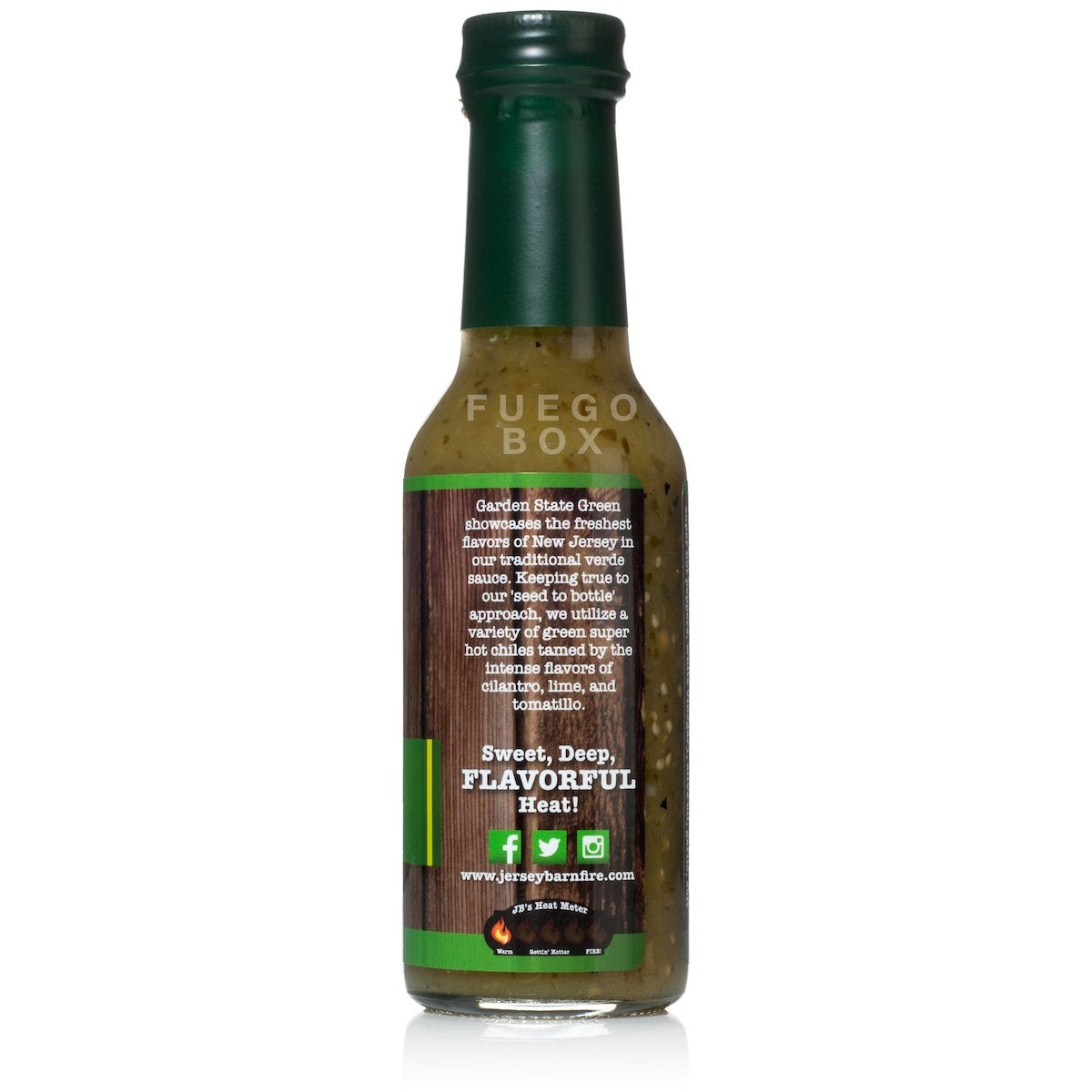 Already one of our favorite sauce makers, Jersey Barnfire has hit it out of the park with their new fire roasted verde sauce. Garden State Green is a cilantro-lime- tomatillo blast paired with a super hot green pepper mash created to utilize the green chiles on JB’s farm before the wrath of the October frost. Addictively delicious, this sauce will take you straight to your favorite taqueria or vacation destination... mentally.