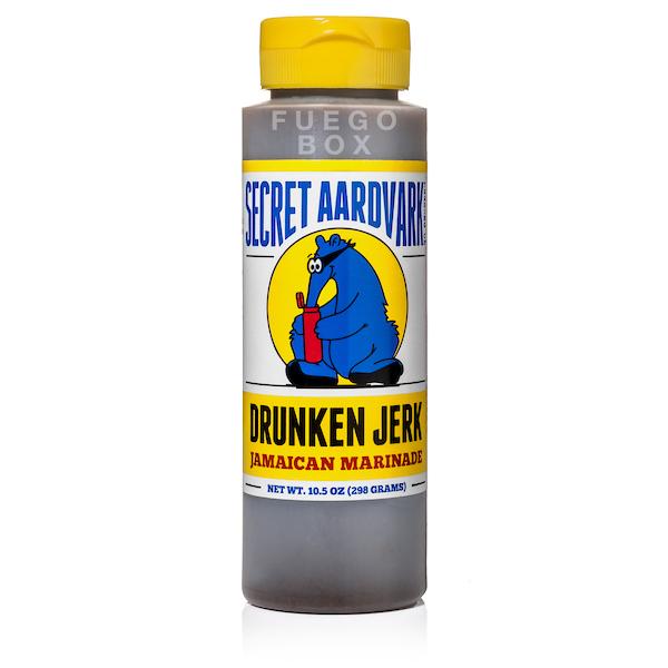 Secret Aardvark Trading Co. was founded in 2004 by creative and culinary genius Scott Moritz. His love of travel, surfing, making music, and telling stories was matched only by his passion for discovering the flavors of the world. Drunken Jerk sauce is a combination of Jamaican Jerk seasoning with just the right balance of thyme, allspice, habanero peppers, and garlic. The addition of dark rum to this marinade makes it "Drunken".
